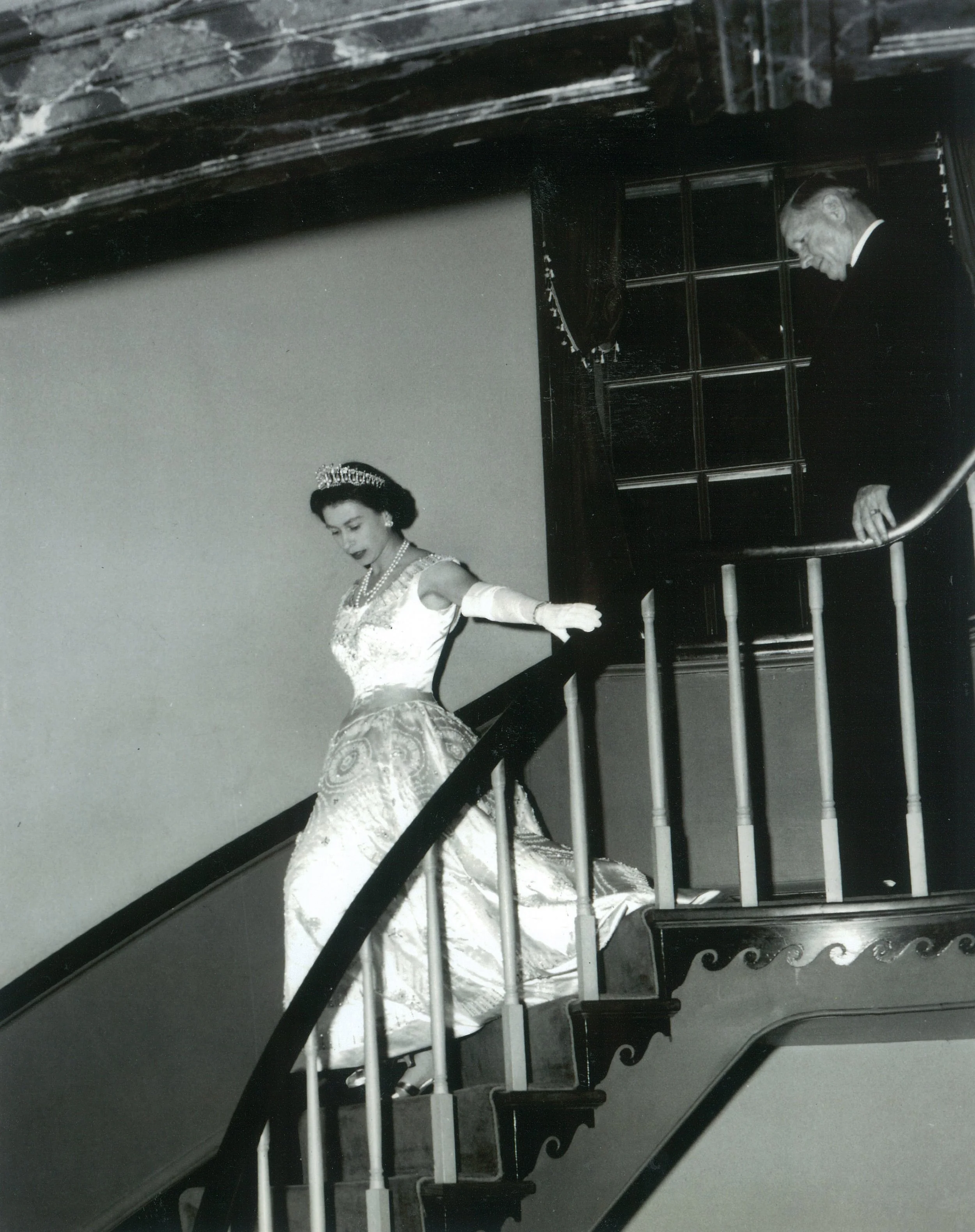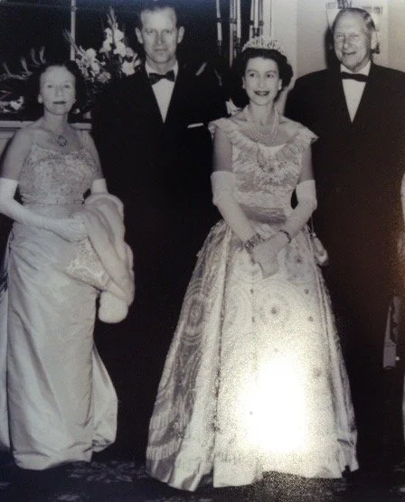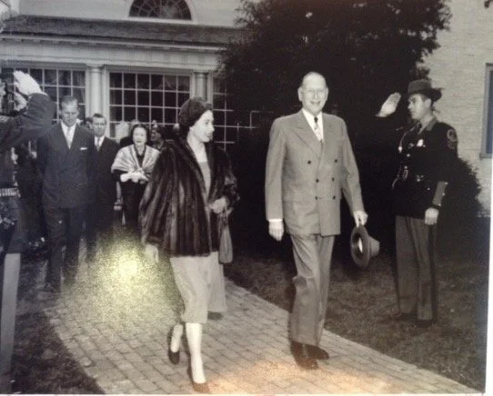 1957 - Governor Thomas B. Stanley and Anne B. Stanley host Queen Elizabeth II and Prince Philip during the Royal Visit to Virginia, which celebrated the 350th anniversary of the founding of Jamestown, Virginia.