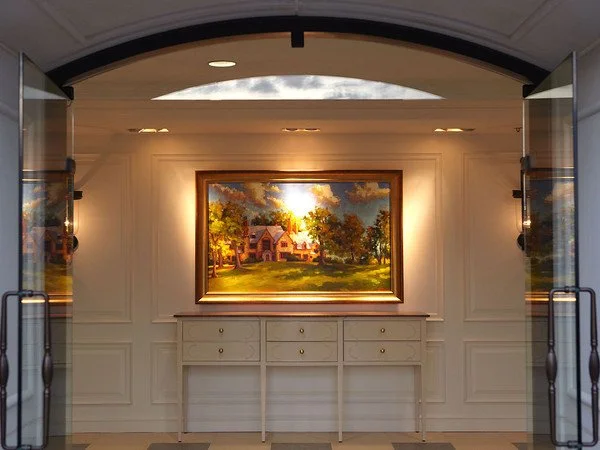 Entry at High Point, North Carolina showroom featuring painting of Stoneleigh by Charleston artist, Jennifer Smith Rogers.